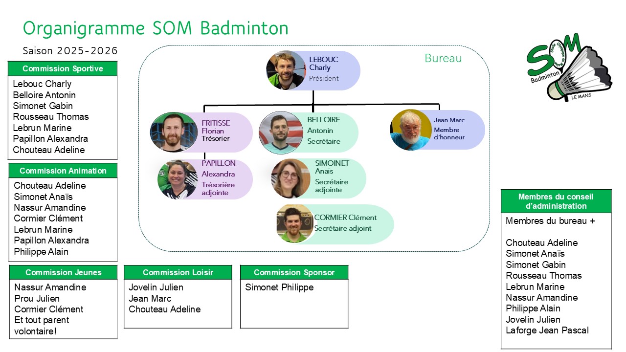 Télécharger le document pdfLe SOM Badminton Le Mans est à la recherche de sponsors afin de pérenniser et développer le club, tant au niveau des jeunes et adultes pratiquant en loisirs ou compétitions, réaliser des projets d'avenir et mettre en place davantage d'événements et animations.