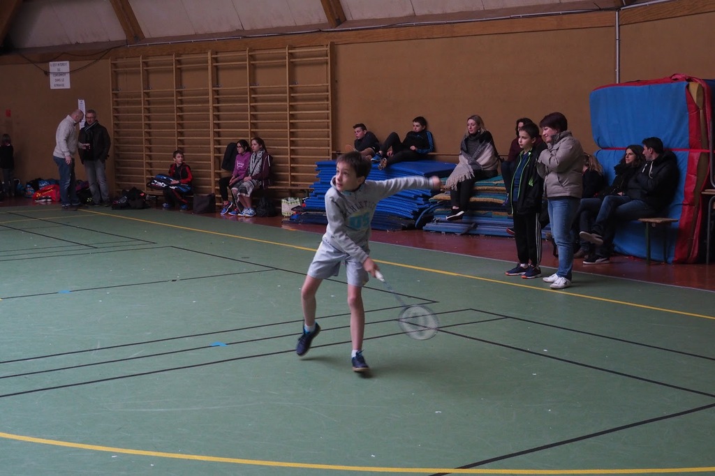 Louison, dans sa poule de 3 benjamins, a du se montrer très patient car son 1er match prévu vers 12h00 n’a pas eu lieu (WO de son adversaire). 1er match donc gagné 21/0 21/0 face à un joueur invisible sans même transpirer ;) Il a ainsi pu découvrir les joies du scorage. Le 2nd match fut perdu face un joueur de niveau supérieur qui sera champion départemental. Un bel esprit régnait sur ce terrain tant au niveau des deux joueurs que celui d’Emma au scorage. Avec un match gagné, Louison a pu sortir de poule et rencontrer à nouveau un joueur expérimenté. Louison a cependant fourni le meilleur et était « content car j’ai réussi à mettre en place des choses » et a construire effectivement de jolis points. Bravo pour ce bel esprit !!